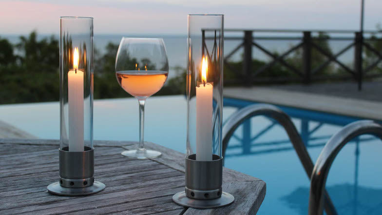 Kattvikstagerne er velegnede til både private hjem, restauranter og virksomheder – ja, til alle, der værdsætter det unikke og naturlige skær fra rigtige levende lys. Luften suges ind gennem huller i stagens fod og danner en ‘skorstenseffekt’, som giver minimal sodning og sikrer at lyset ikke løber. Lyset bliver beskyttet af glasset, så det ikke blæser ud, men brænder virkelig flot – og som vist her, kan give hygge og rigtig god stemning omkring havebordet!