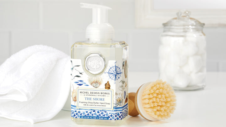 Luksus håndsæbe i elegant dispenser, der pumpes ud som silkeblødt, velduftende skum.