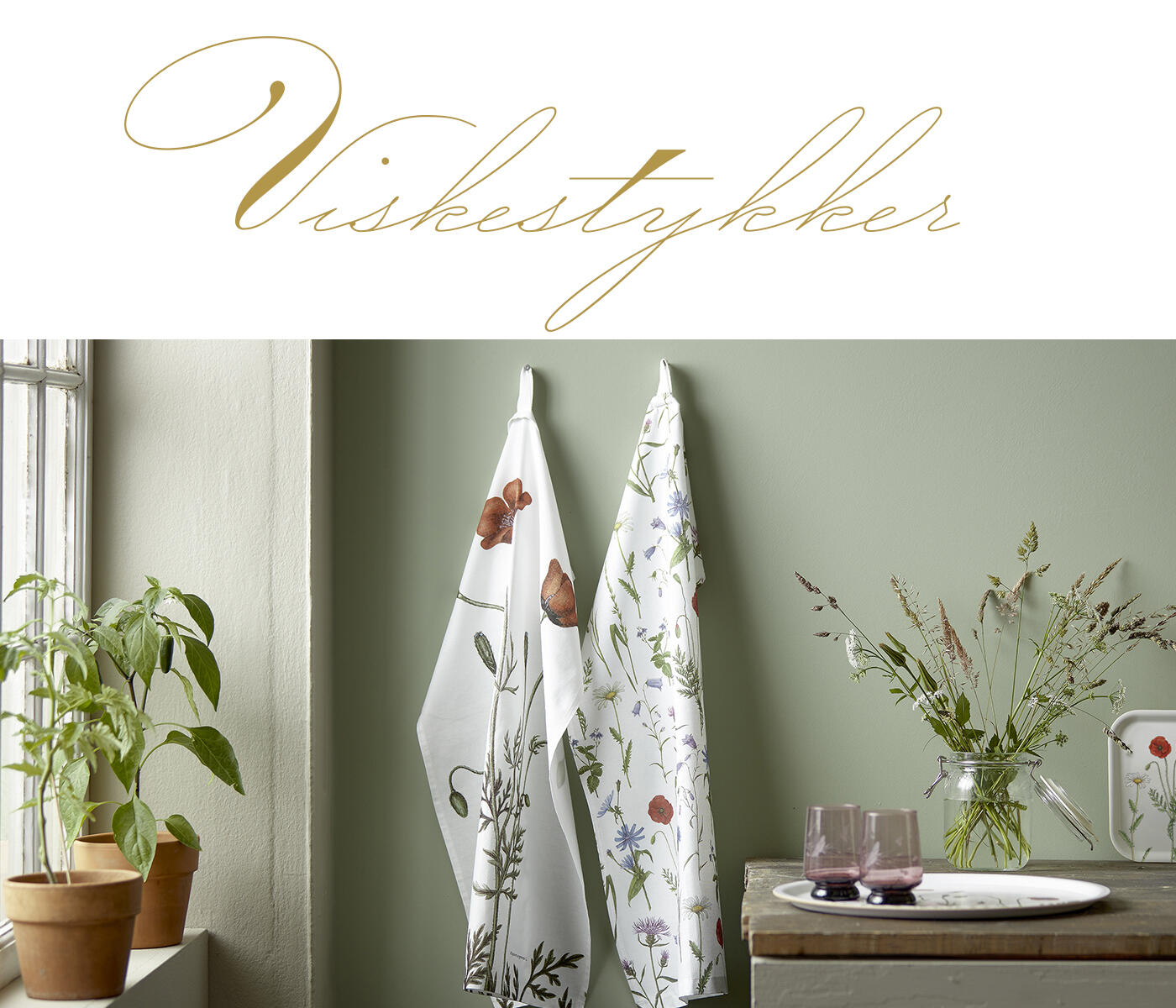 Alle viskestykker er således fremstillet af økologisk bomuld, og med vandbaserede trykfarver. På den måde kan du fremover tørre af med både god stil og god samvittighed.