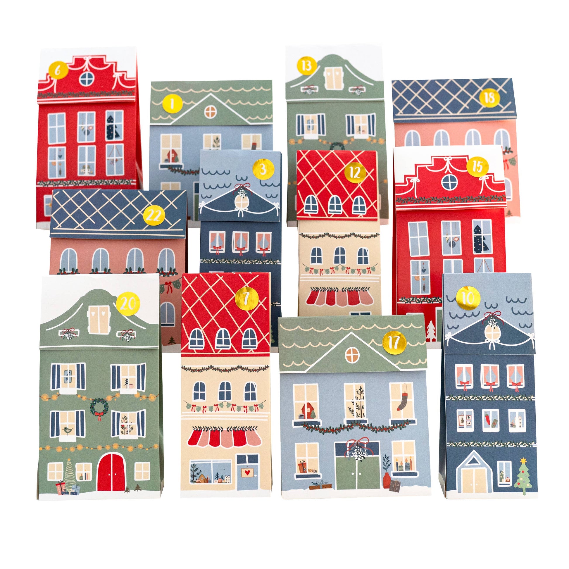 DIY Julekalender Juleby - 24 Huse i Pastelfarver - Pakkelander
