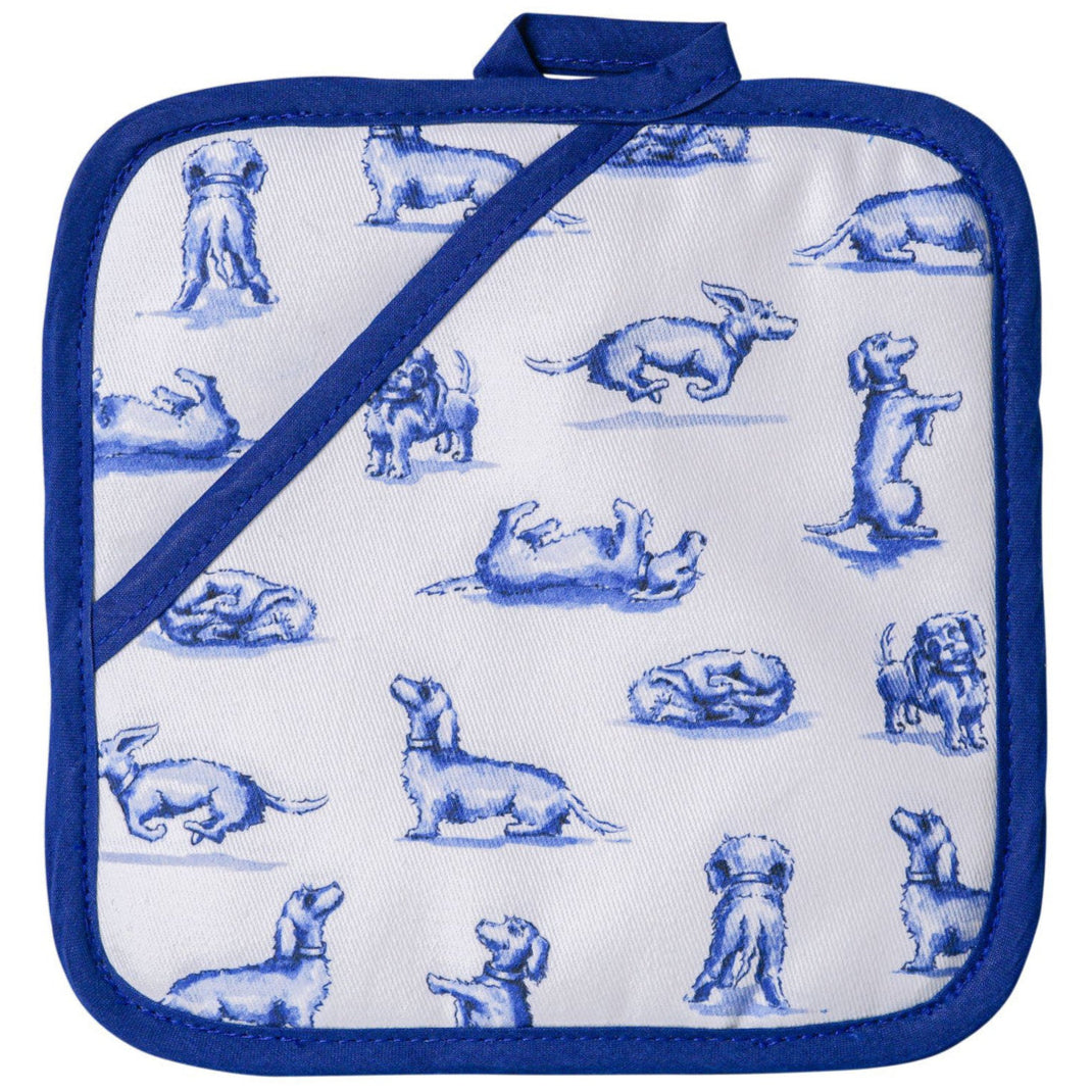 Denne luksuriøse grydelap i bomuld vil med garanti gøre dig glad. Den legesyge gravhund Nhaan hygger sig på grydelappen, og viser alle sine bedste, muntre og yndige sider