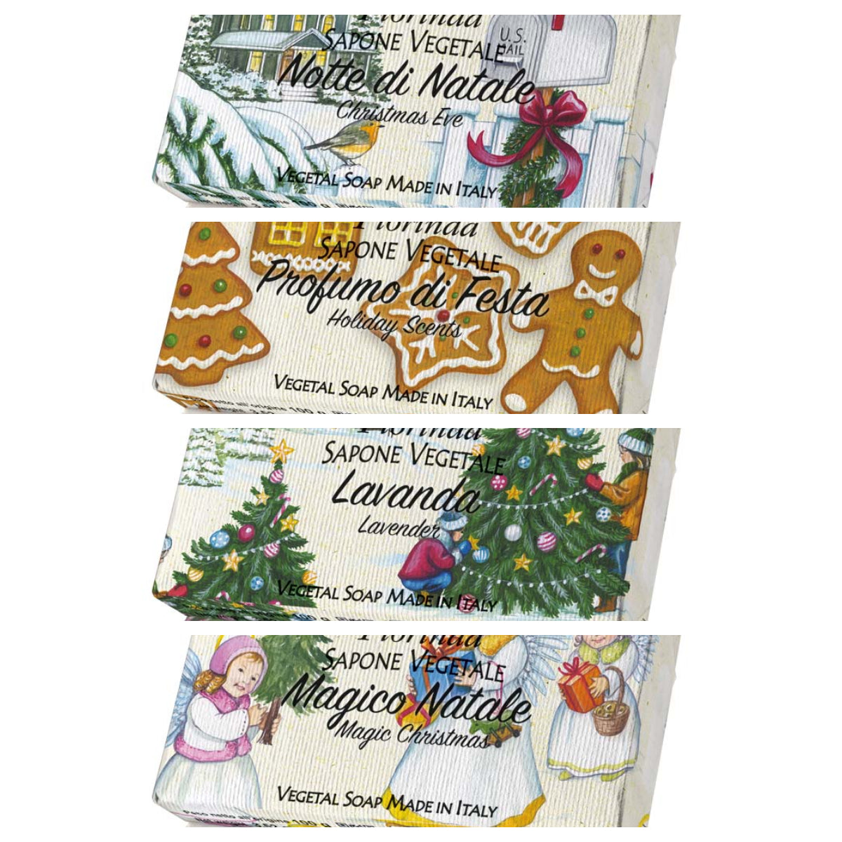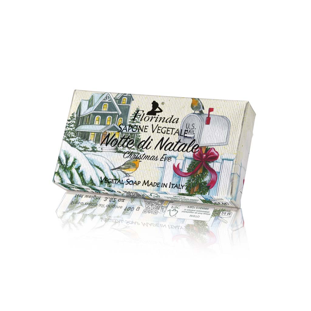 Florinda sæben er et helt lille kunststykke i en raffineret 2 lags indpakning i økologisk papir med det yndigste julemotiv!