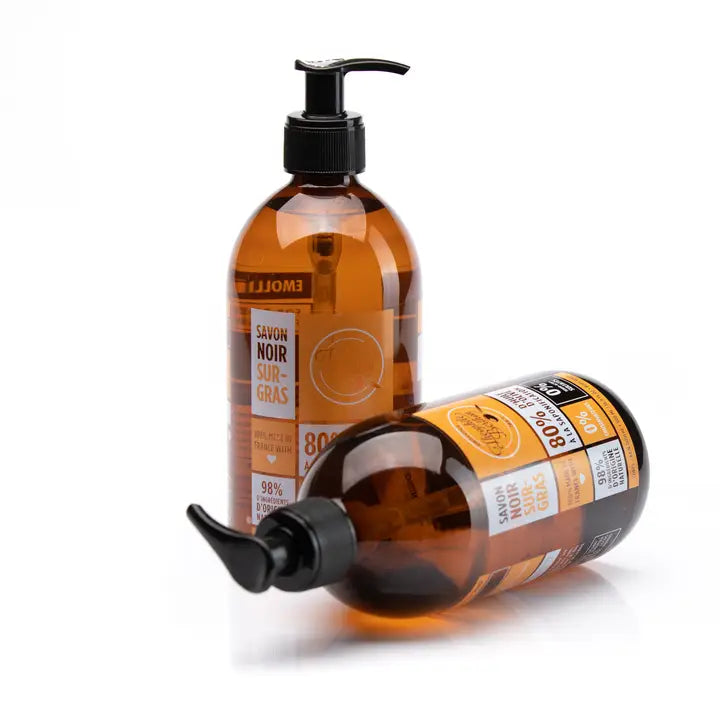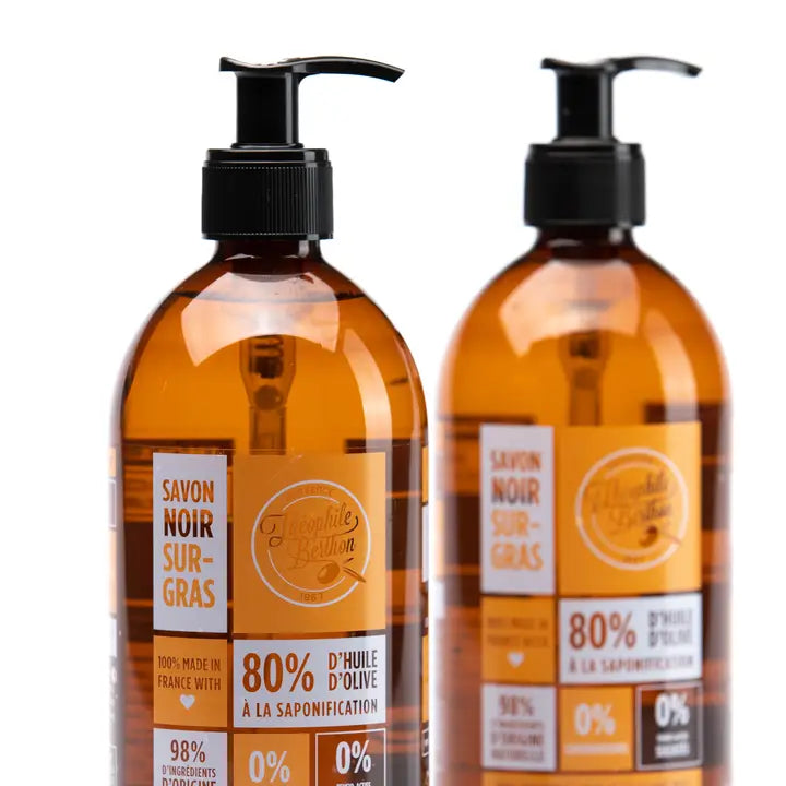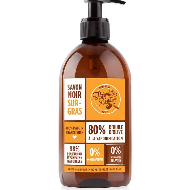 Denne flydende kropssæbe er lavet ved forsæbning, med den traditionelle metode til fremstilling af Marseille-sæber. Vores fedtbase består af 80% olie fra olivenpresserester og 20% copra. Med kaliumchlorid, en naturlig ler, der holder sæben flydende, omdannes blandingen langsomt til en sæbepasta under opsyn af vores Master Soapmaker.