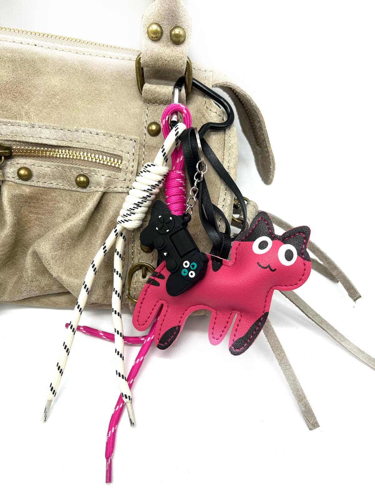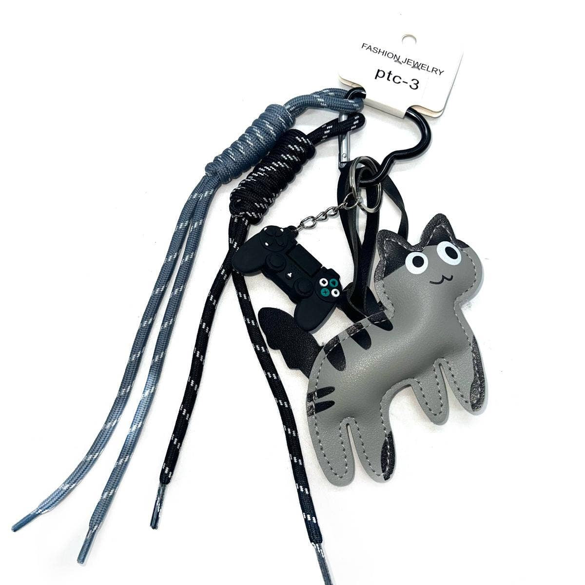 Trendy grå nøglering med kattemotiv