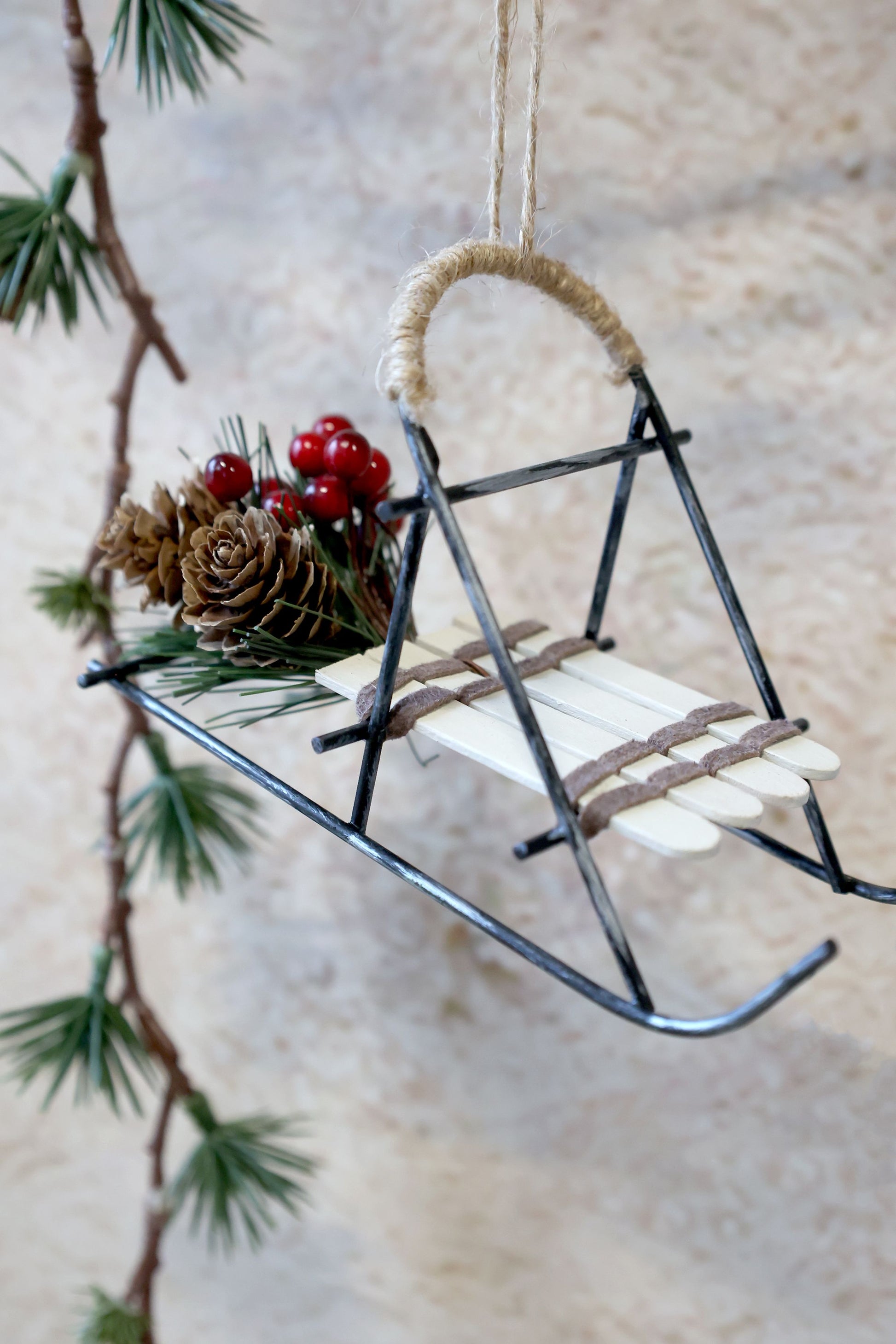 Materiale: Træ, Metal, Lædersnor